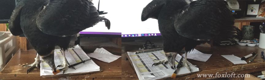 Our in-house avian artist, Sev the baby yellow-headed vulture, will be 'hand-signing' postcards! He is still learning, so they may be painted footprints, or lines made with a brush or beak (or a combination of any of those - he will get creative freedom). Paint used is vulture-safe and non-toxic. Each one will be one-of-a-kind. The postcards themselves will be custom-printed 4x6 with beautiful watercolor vulture art on the front, and Sev's original art on the back. Suitable for framing, or will look really cute on your fridge!Proceeds go towards my wildlife rehabilitation work as I gear up for a busy spring season.